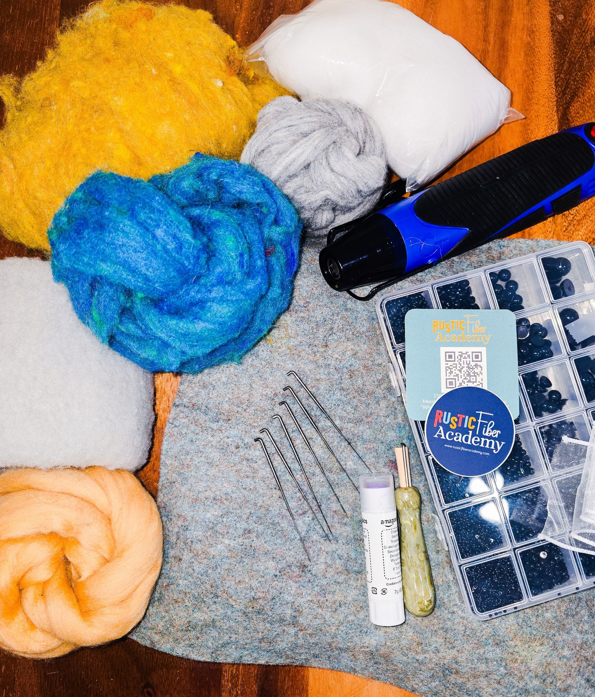 One member will receive a curated box of my favorite felting tools and supplies, including wool, a felting surface, needles, a heat gun, and a few studio surprises.