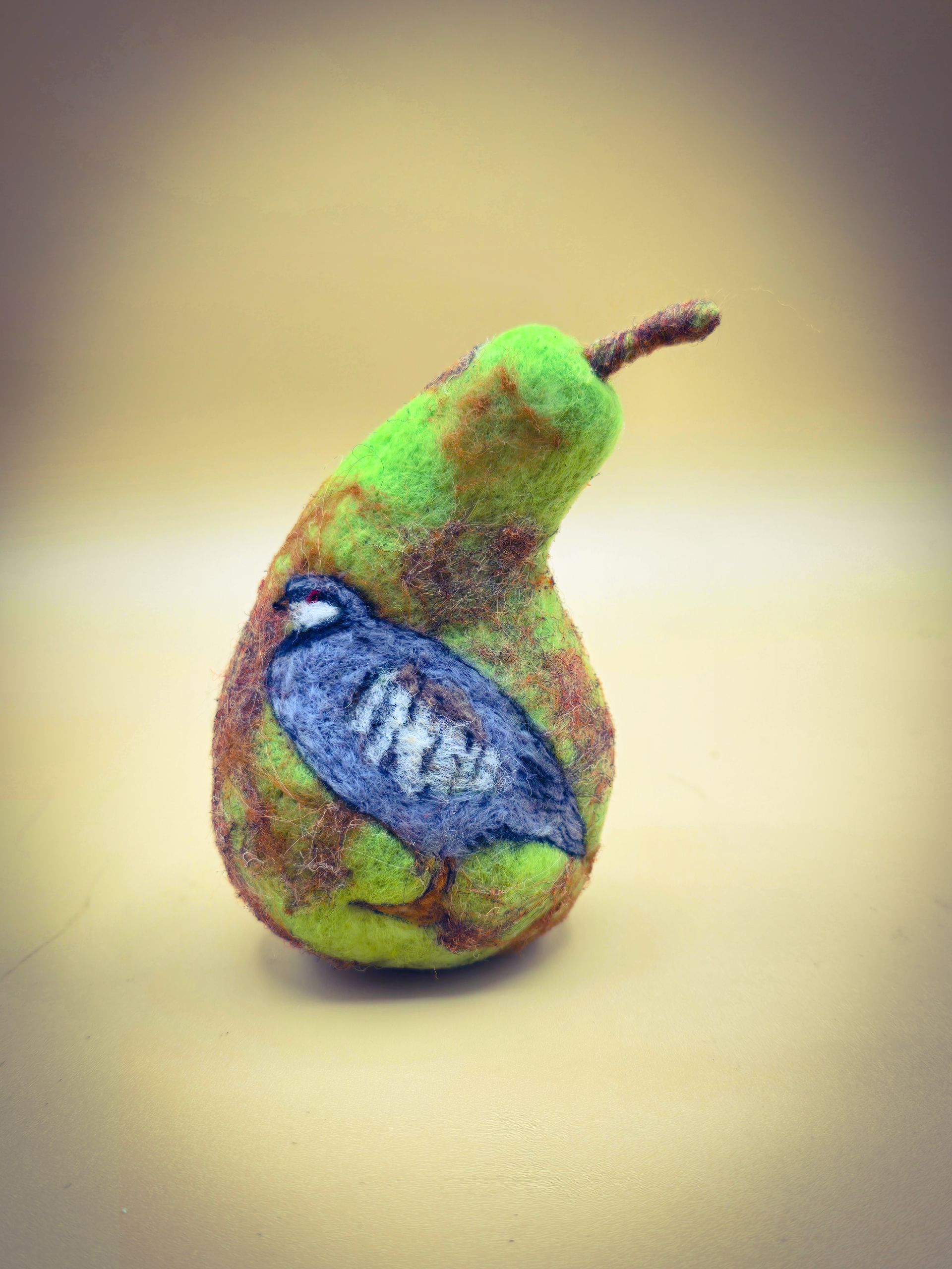 As a bonus, you’ll also get a short video showing how to create a simple 2D needle felted chukar and add it to your pear for an optional decorative touch.